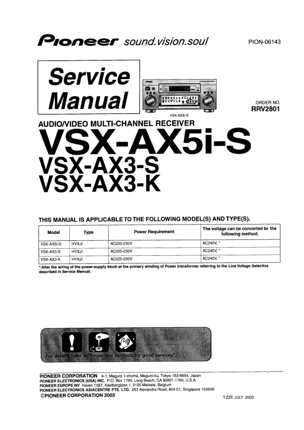 Descripción del PIONEER VSXAX3S Manual de Servicio