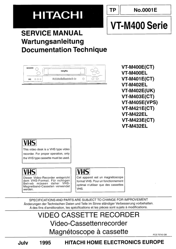 Descripción del HITACHI VTM421ECT Manual de Servicio