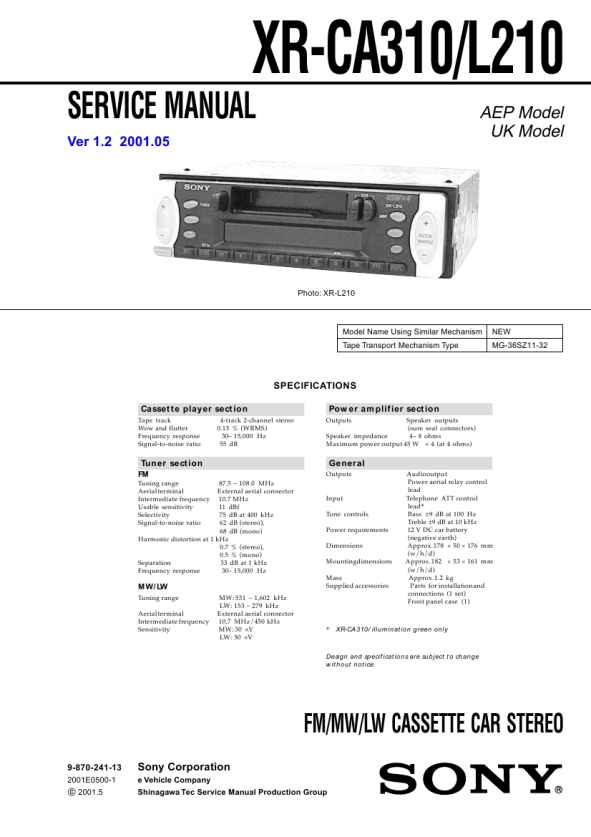 XR-CA310/L210 SECTION 1 GENERAL