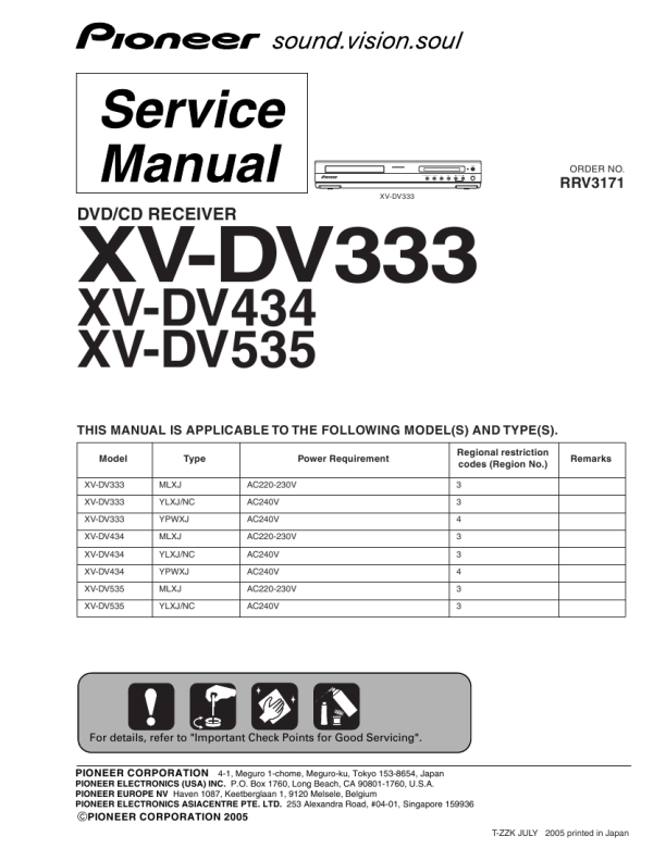 Descripción del PIONEER XV-DV333/MDXJ/RB Manual de Servicio