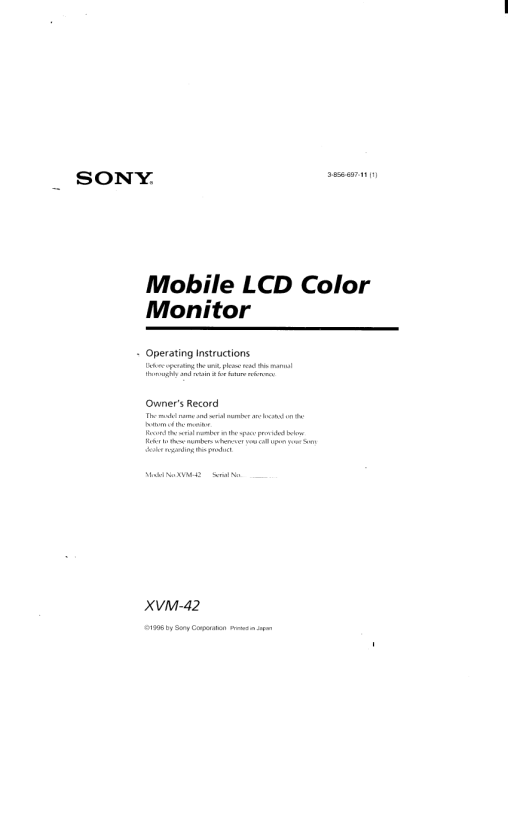 Descripción del SONY XVM-42 Manual de Usuario