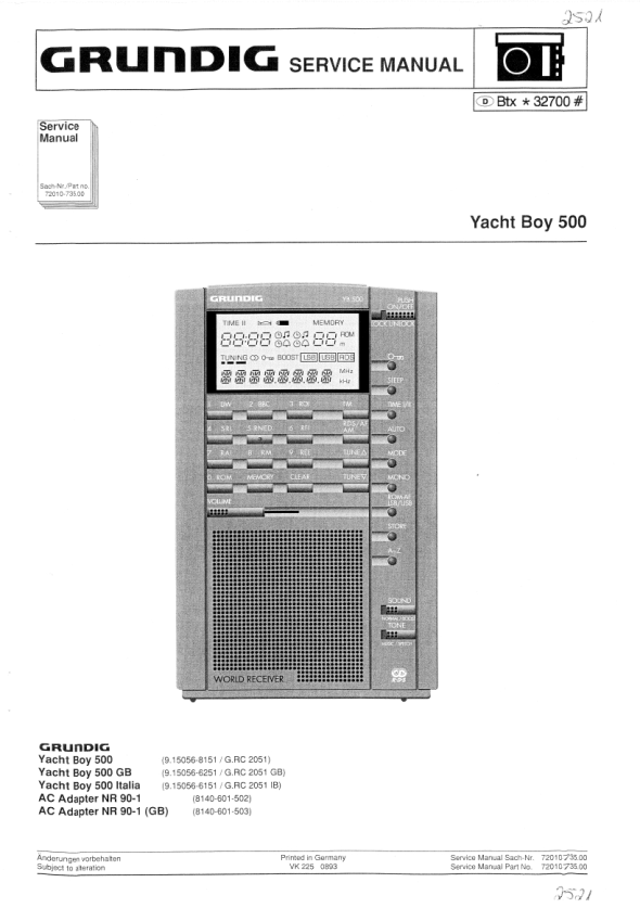 Descripción del GRUNDIG YACHT BOY 500 Manual de Servicio